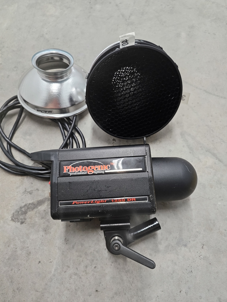 • Single Photogenic studio strobe “Powerlight 1250 DR” with reflector & hard grids