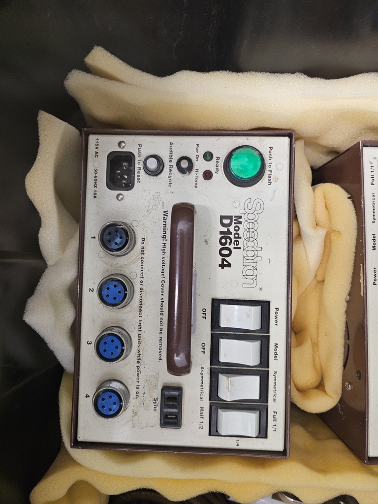 - Set of five JTL studio strobes. Five heads (Versalight 300), two power boxes (Speedtron Model D1604) and two smaller heads. Includes large roller box that holds them all).