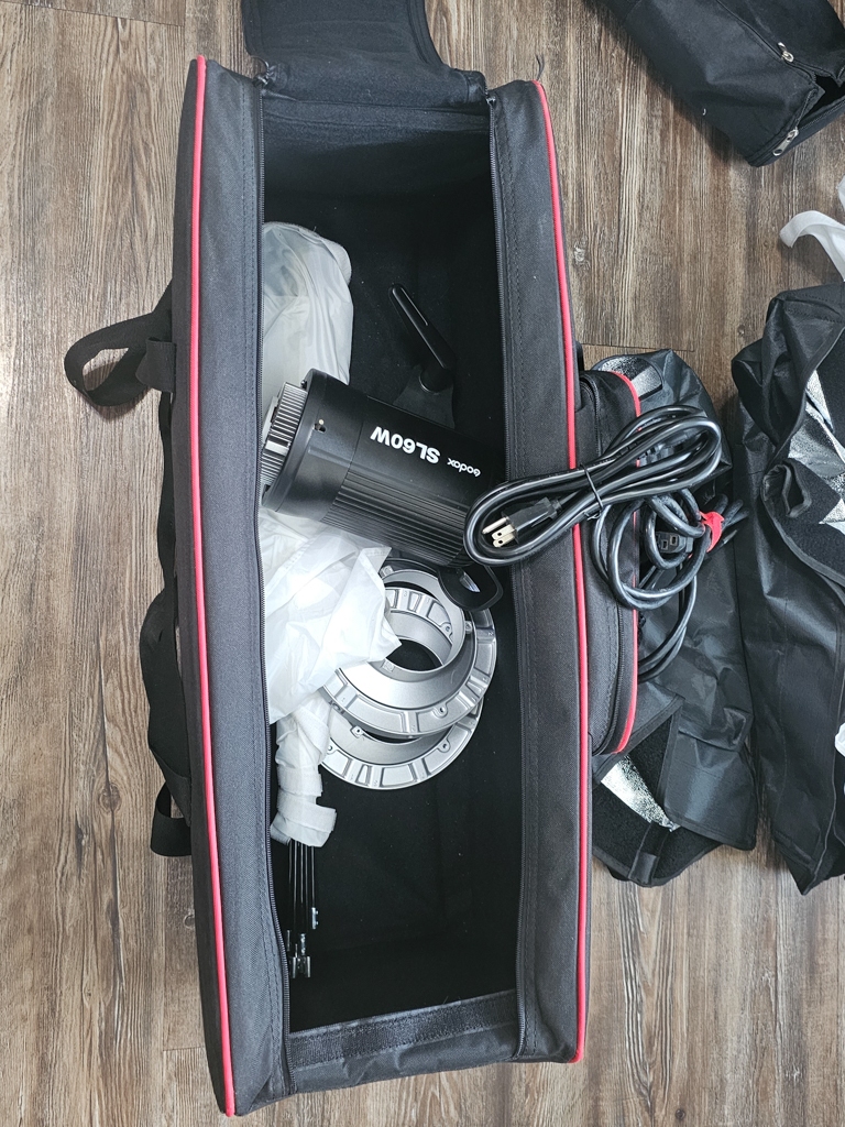 - Two pairs of Godox SL-60 with two rolling cases (one of the cases is damaged)