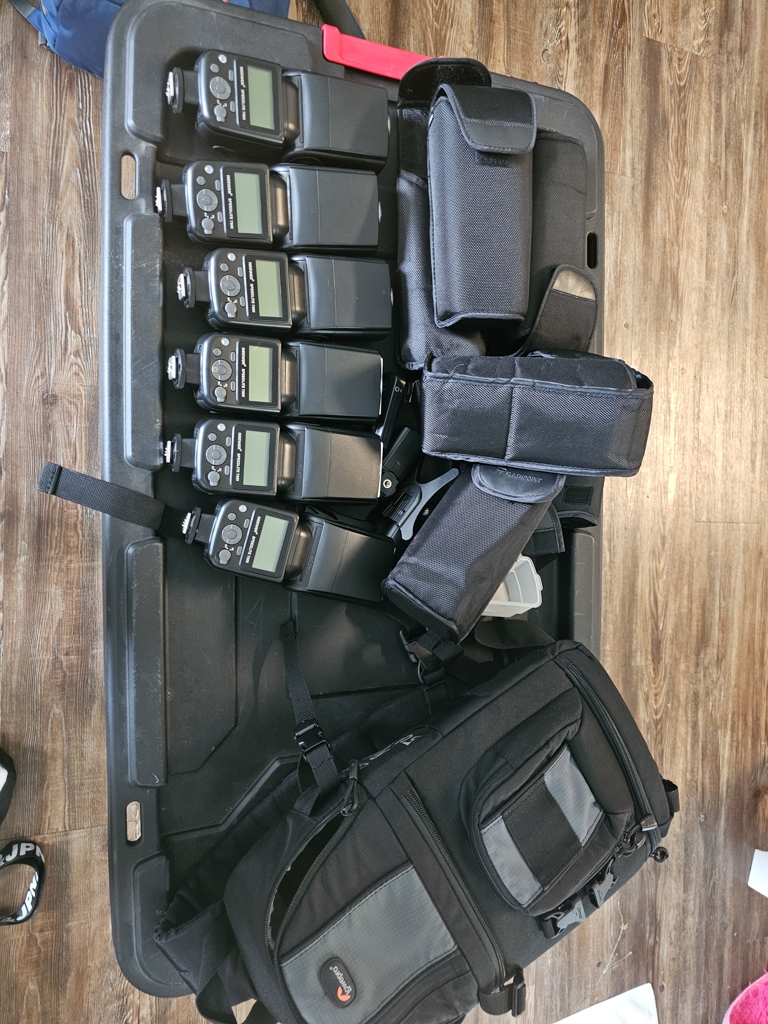• One set of six inexpensive speedlights with the triggers & remotes which work with the Nikons