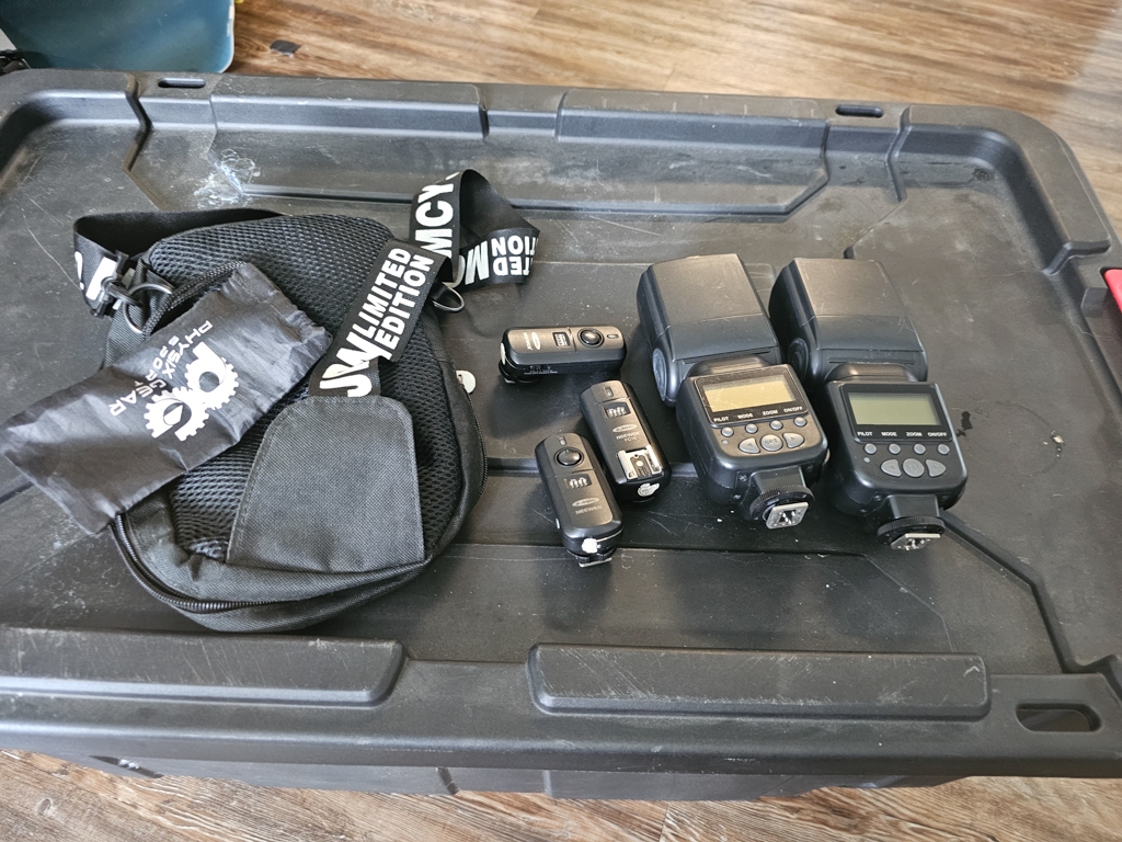 Below is an estimated list of camera, gear, lighting, props, and some other related items intended to be sold as one complete bundle.  There is absolutely no guarantee that anything works or for how much longer it may work properly.  Buyer is advised to do their due diligence by inspecting and testing each item, especially the major items.